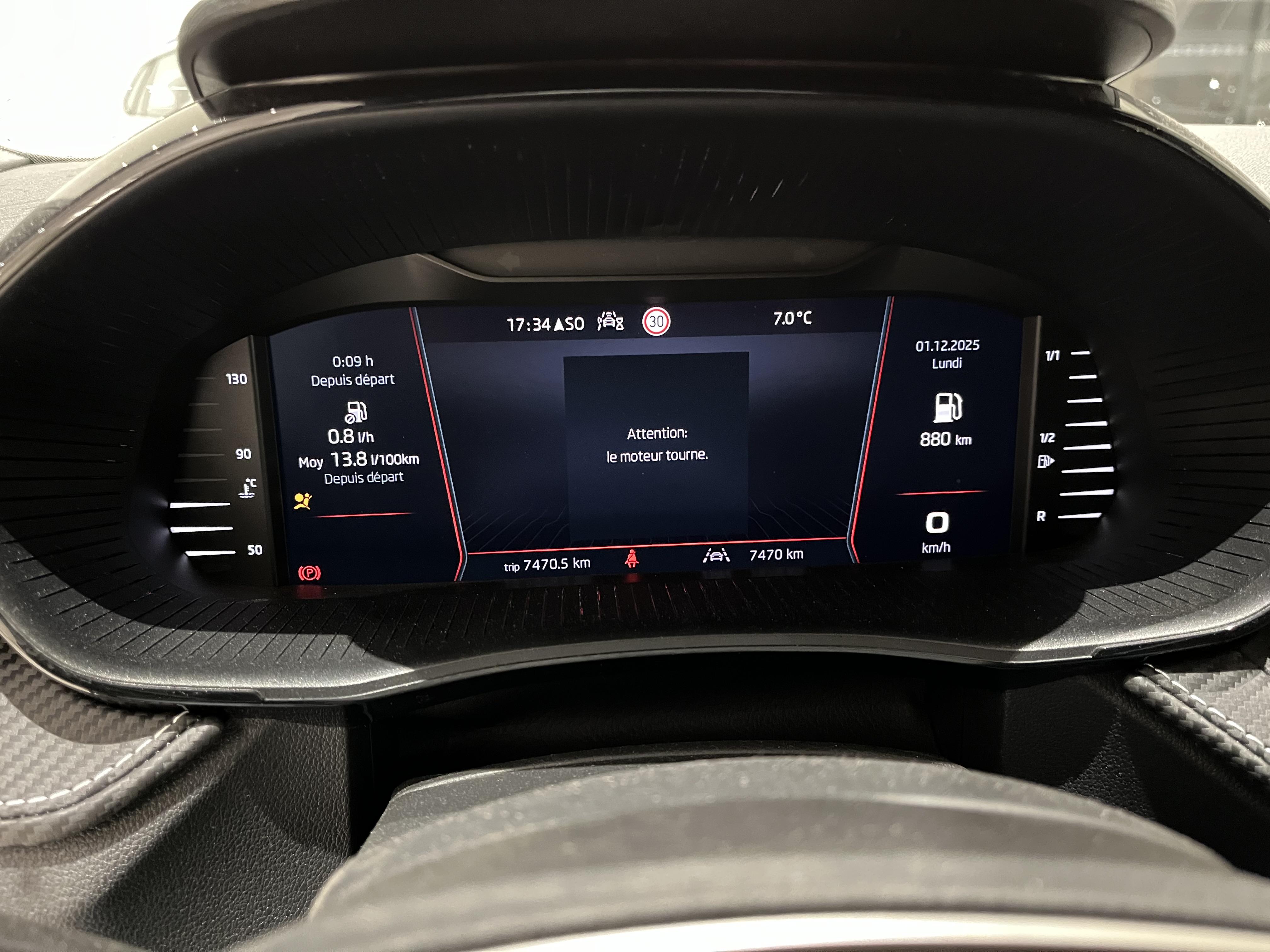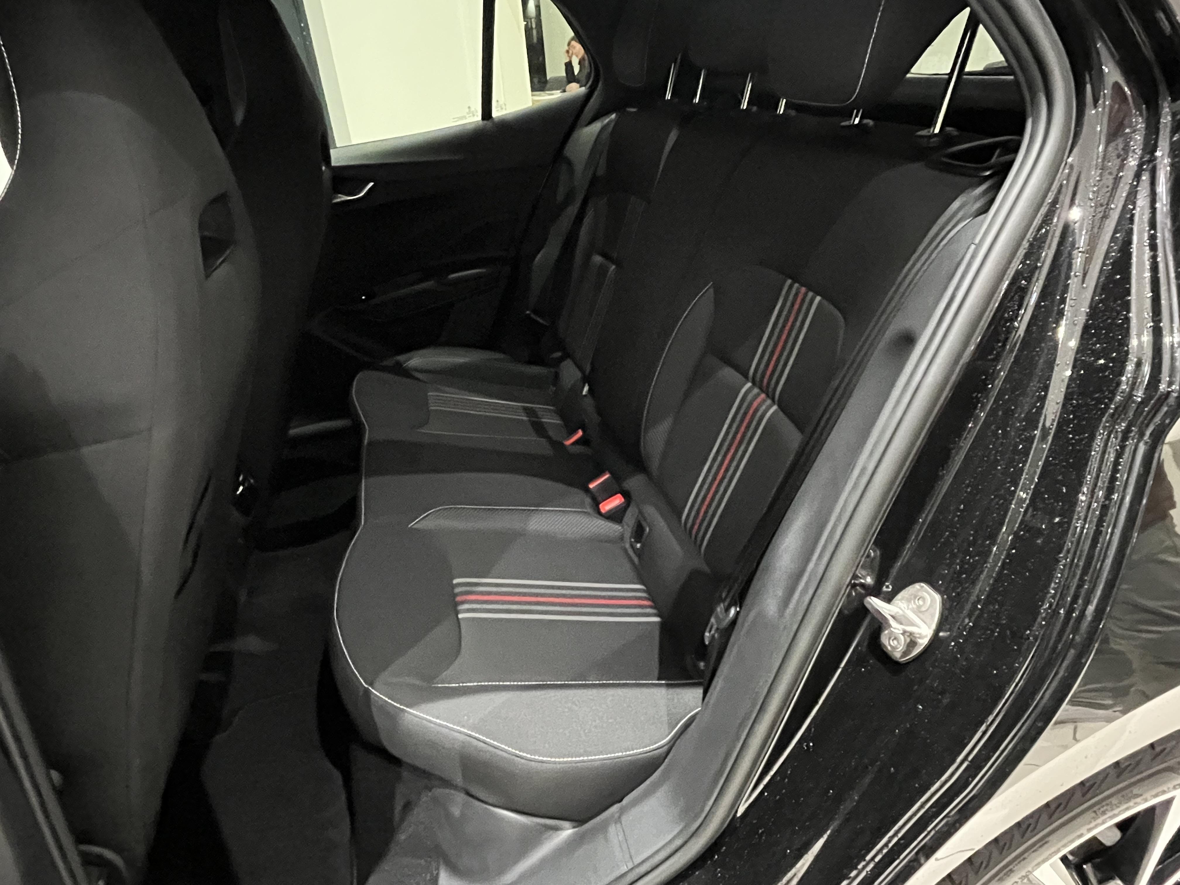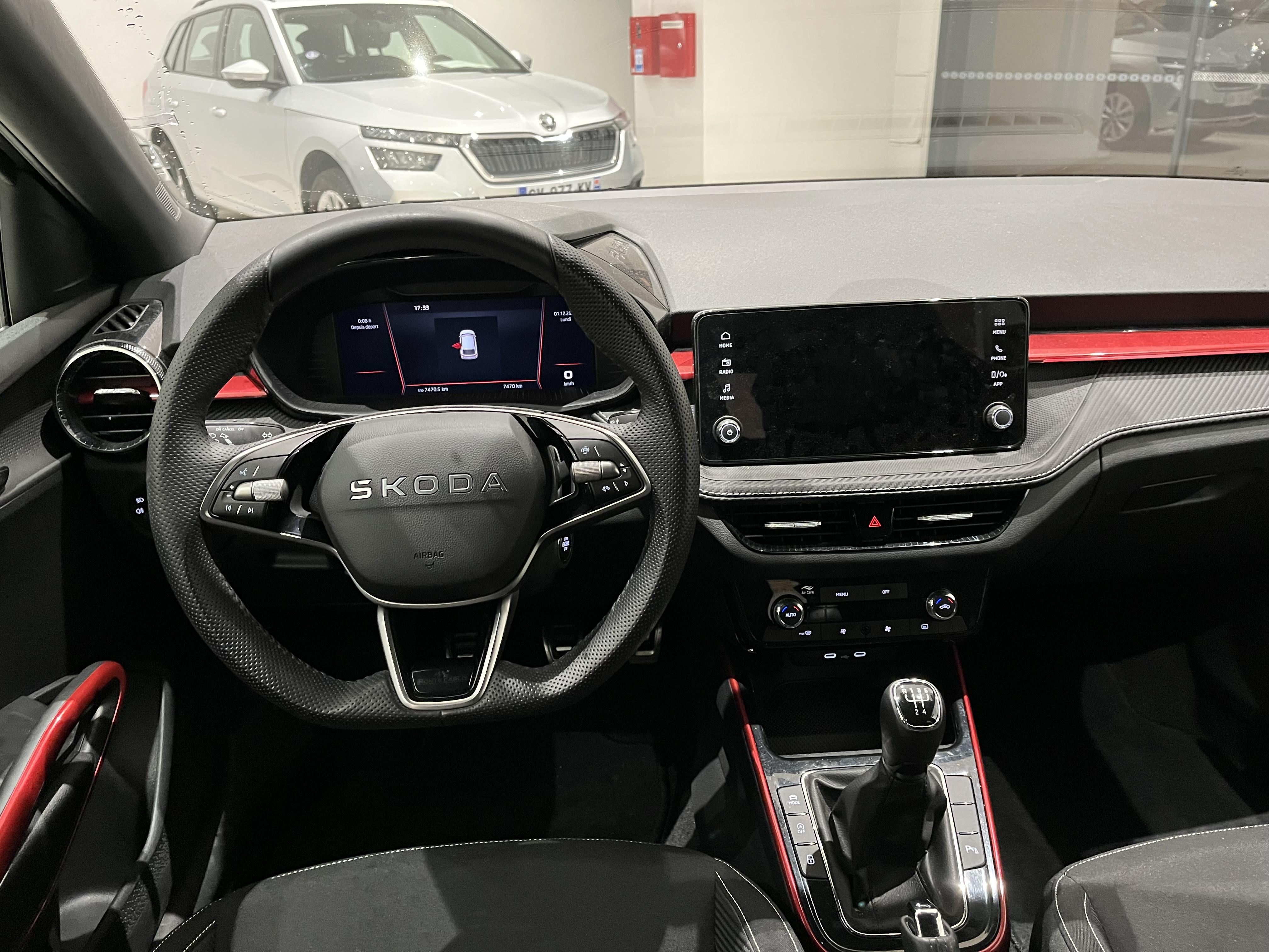 • Design intérieur Monte Carlo : sellerie tissu "Clip Satin Black" avec matériau synthétique effet carbone avec bande rouge et insert décoratif effet carbone