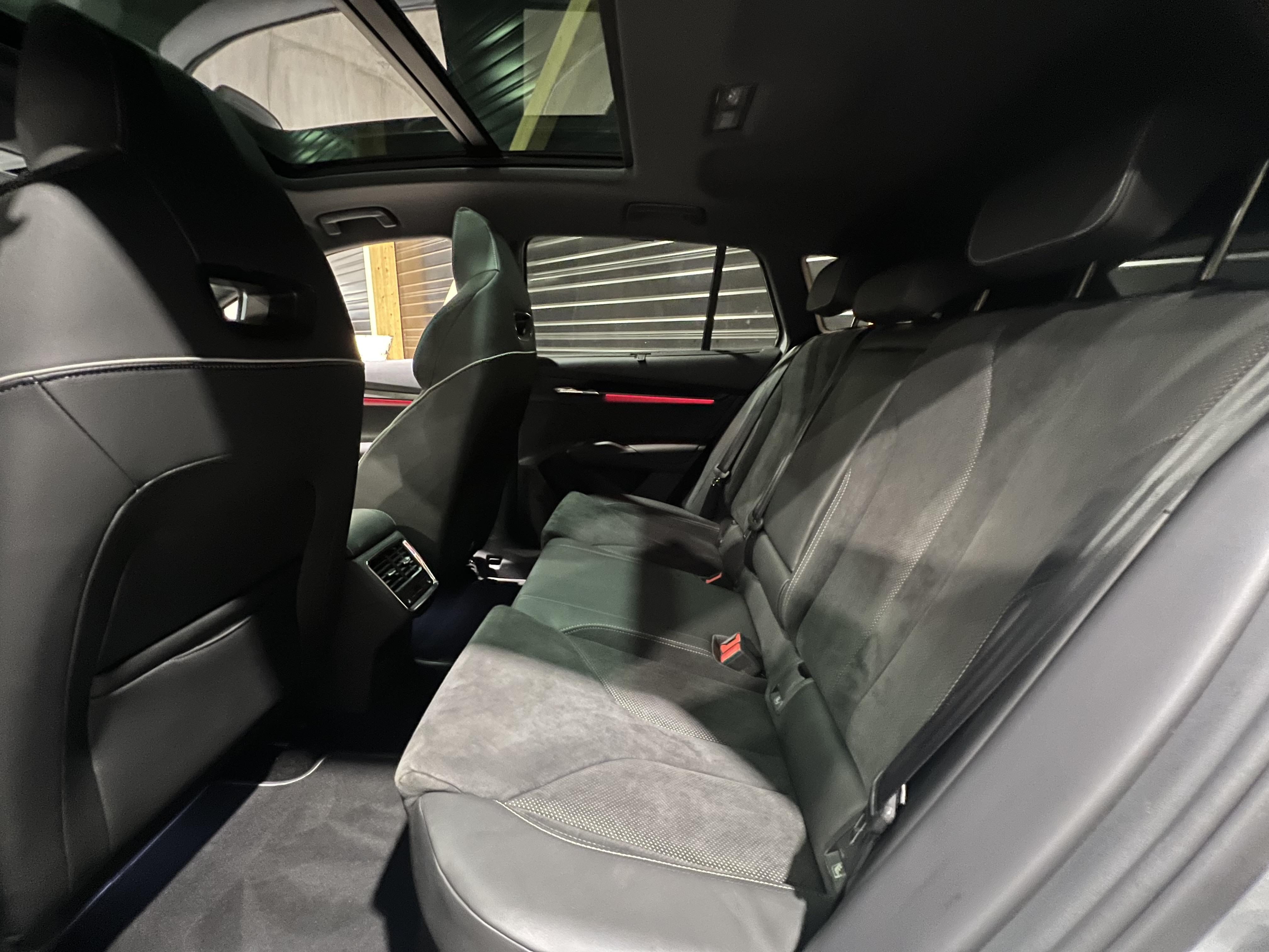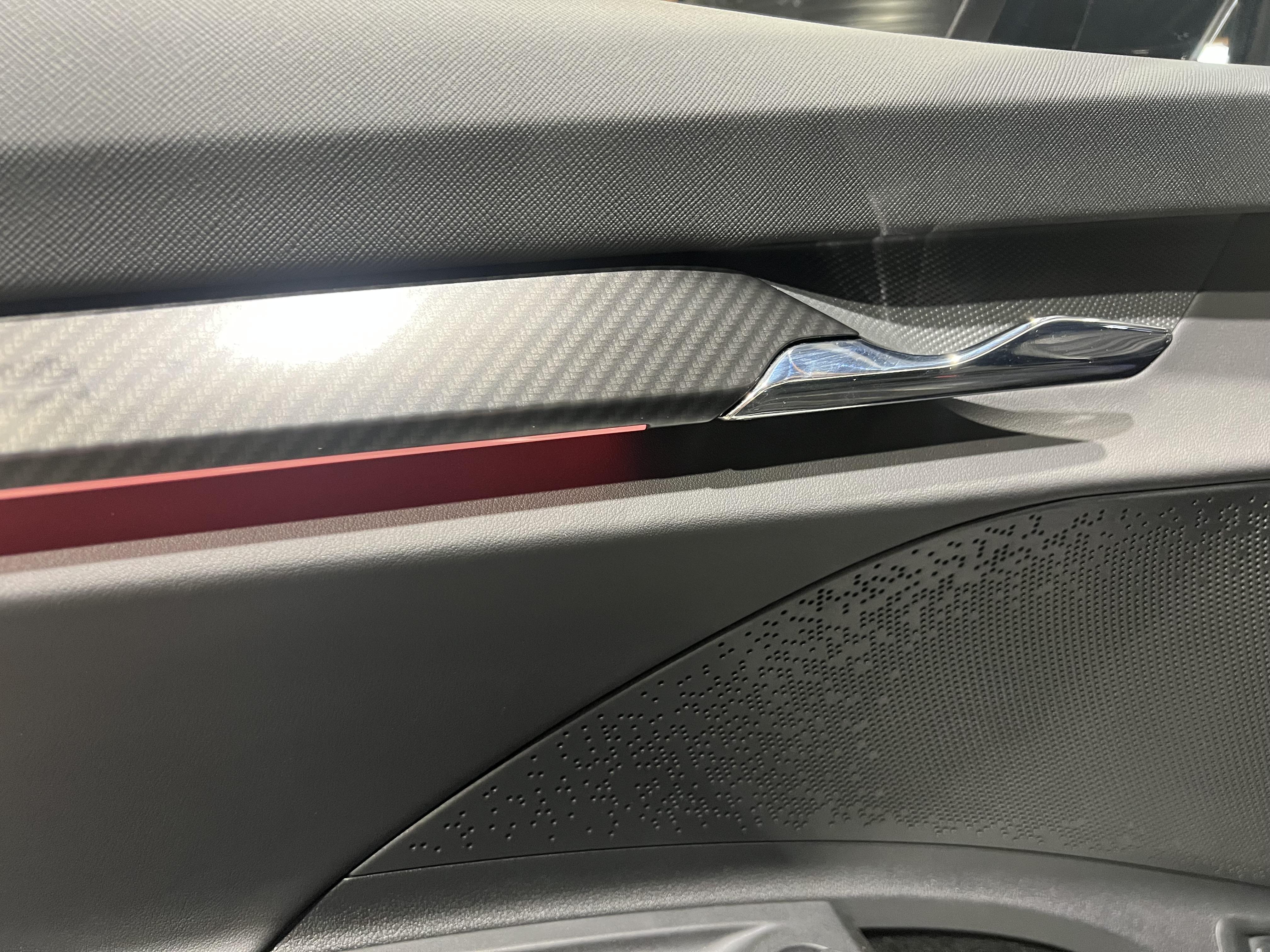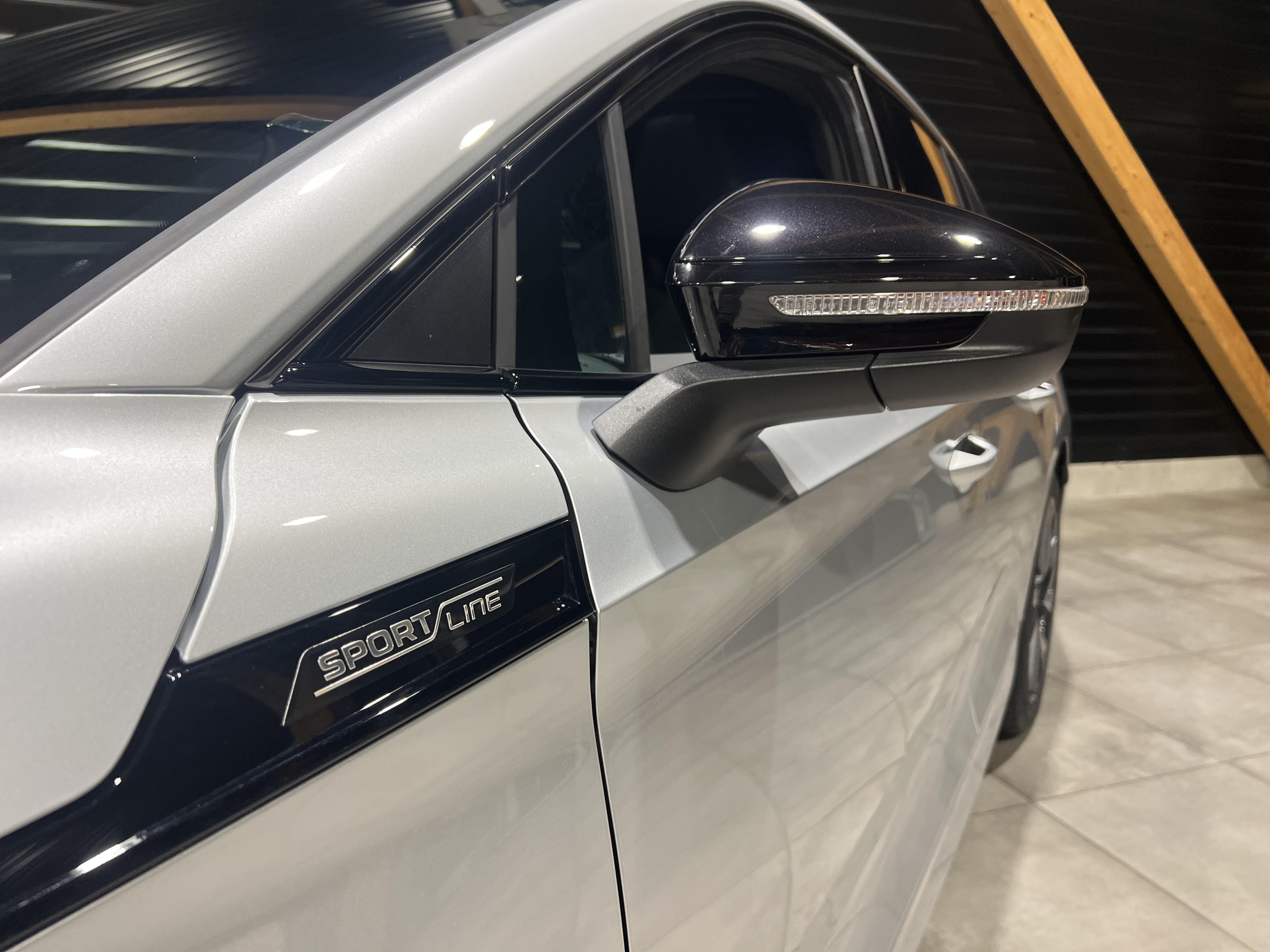 • Design intérieur Sportline Sellerie tissu suédine noir perforé, matériau synthétique noir et surpiqûres grises et noires, Ciel de toit noir, Insert décoratif effet carbone sur Planche de bord/contreportes, Habillage matériau synthétique noir sur Planche de bord/contreportes, Eclairage d'ambiance intérieur personnalisable sur planche de bord