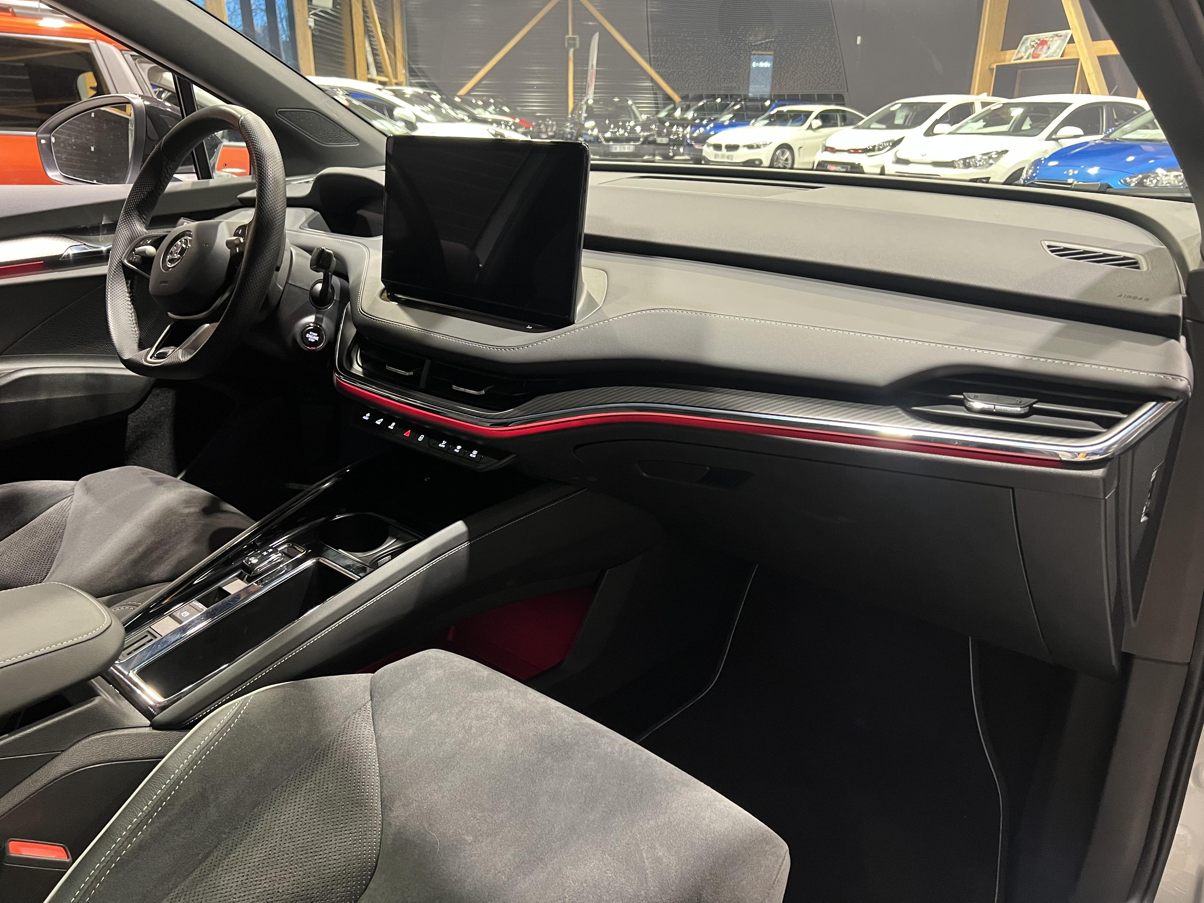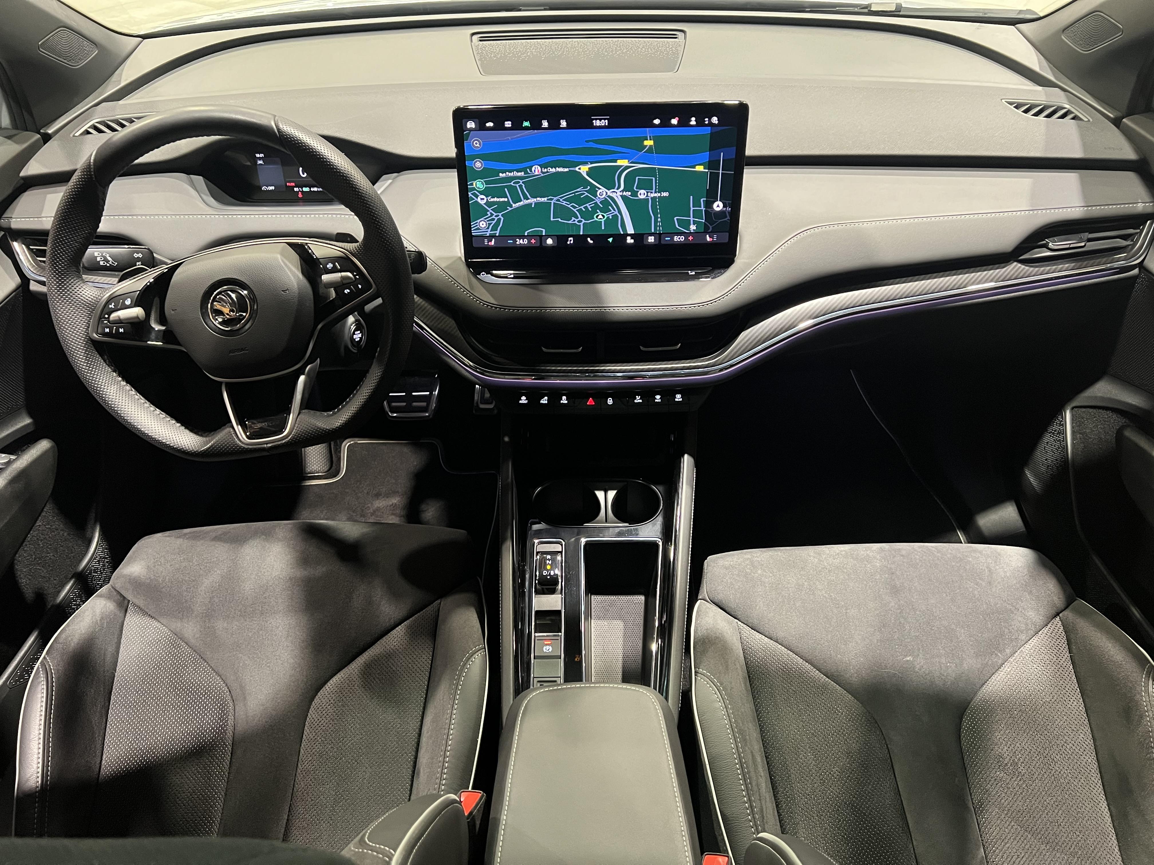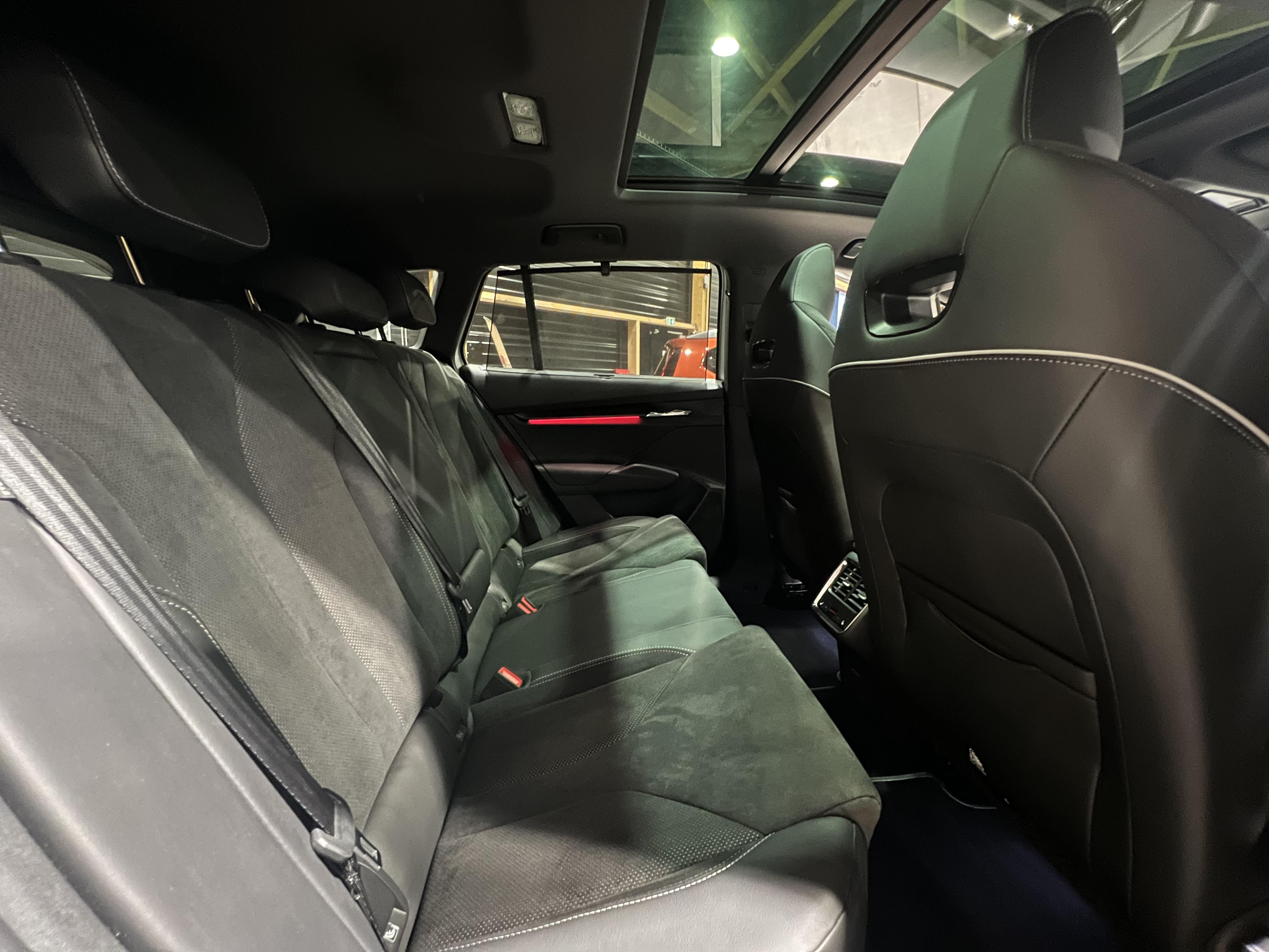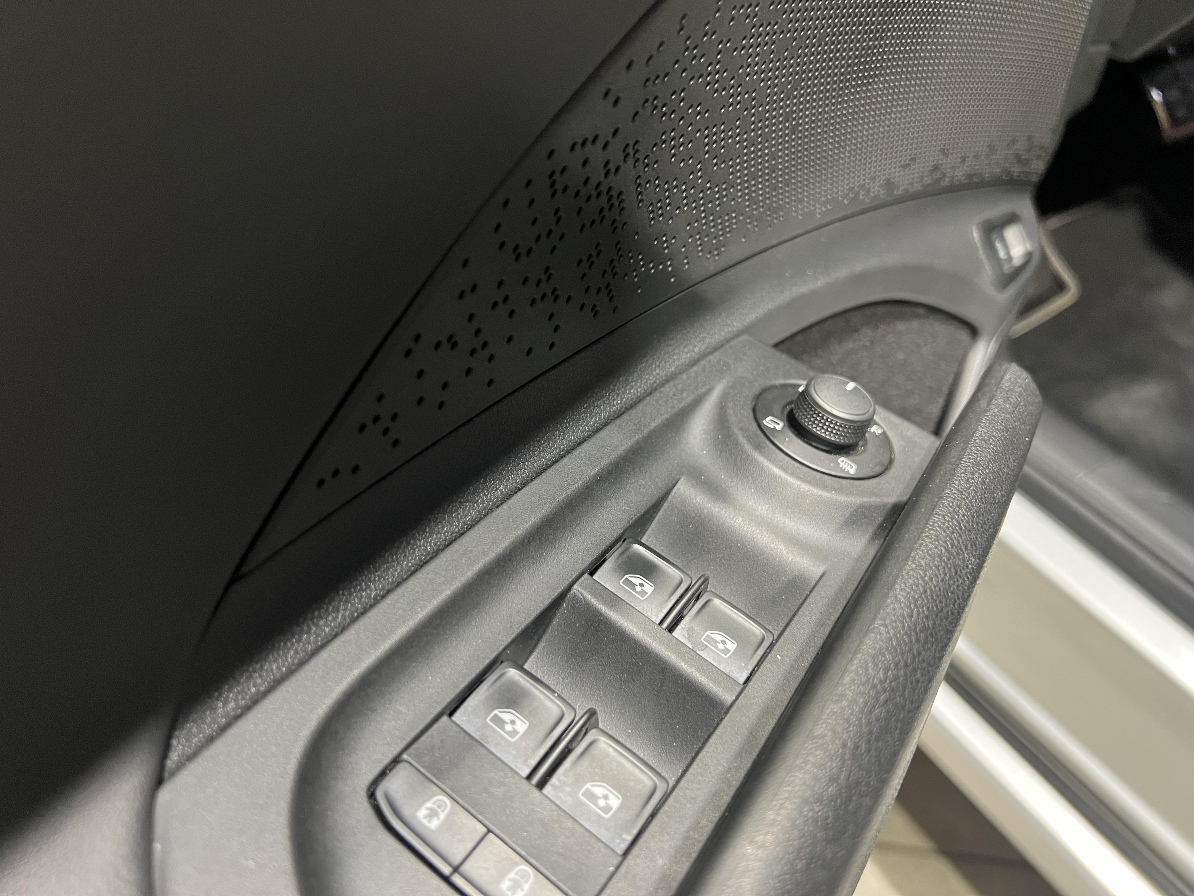 • Design intérieur Sportline Sellerie tissu suédine noir perforé, matériau synthétique noir et surpiqûres grises et noires, Ciel de toit noir, Insert décoratif effet carbone sur Planche de bord/contreportes, Habillage matériau synthétique noir sur Planche de bord/contreportes, Eclairage d'ambiance intérieur personnalisable sur planche de bord