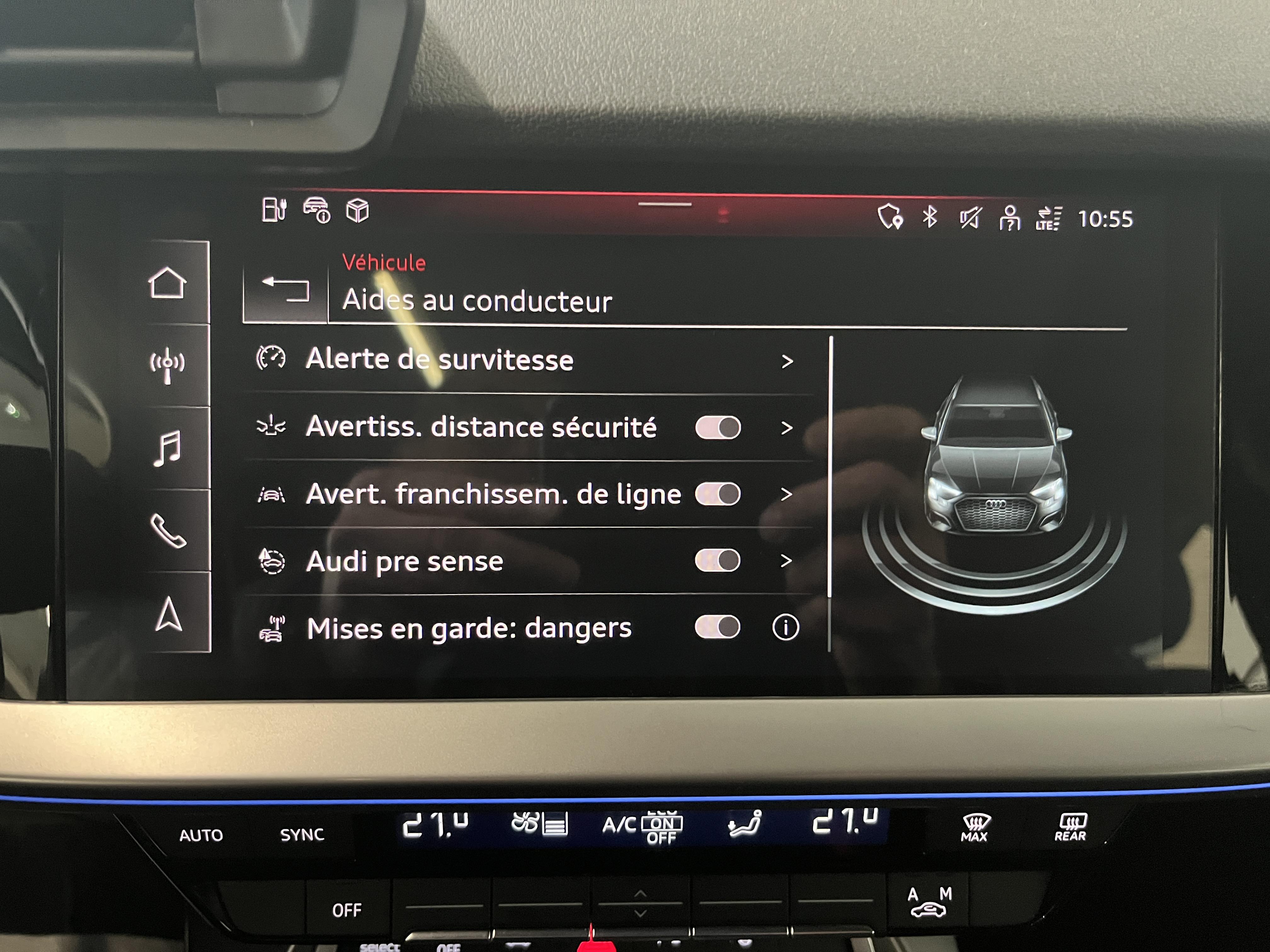 - Audi sound system : 10 HP incluant un HP central et un subwoofer, amplificateur à 6 canaux avec une puissance totale de 180 watts