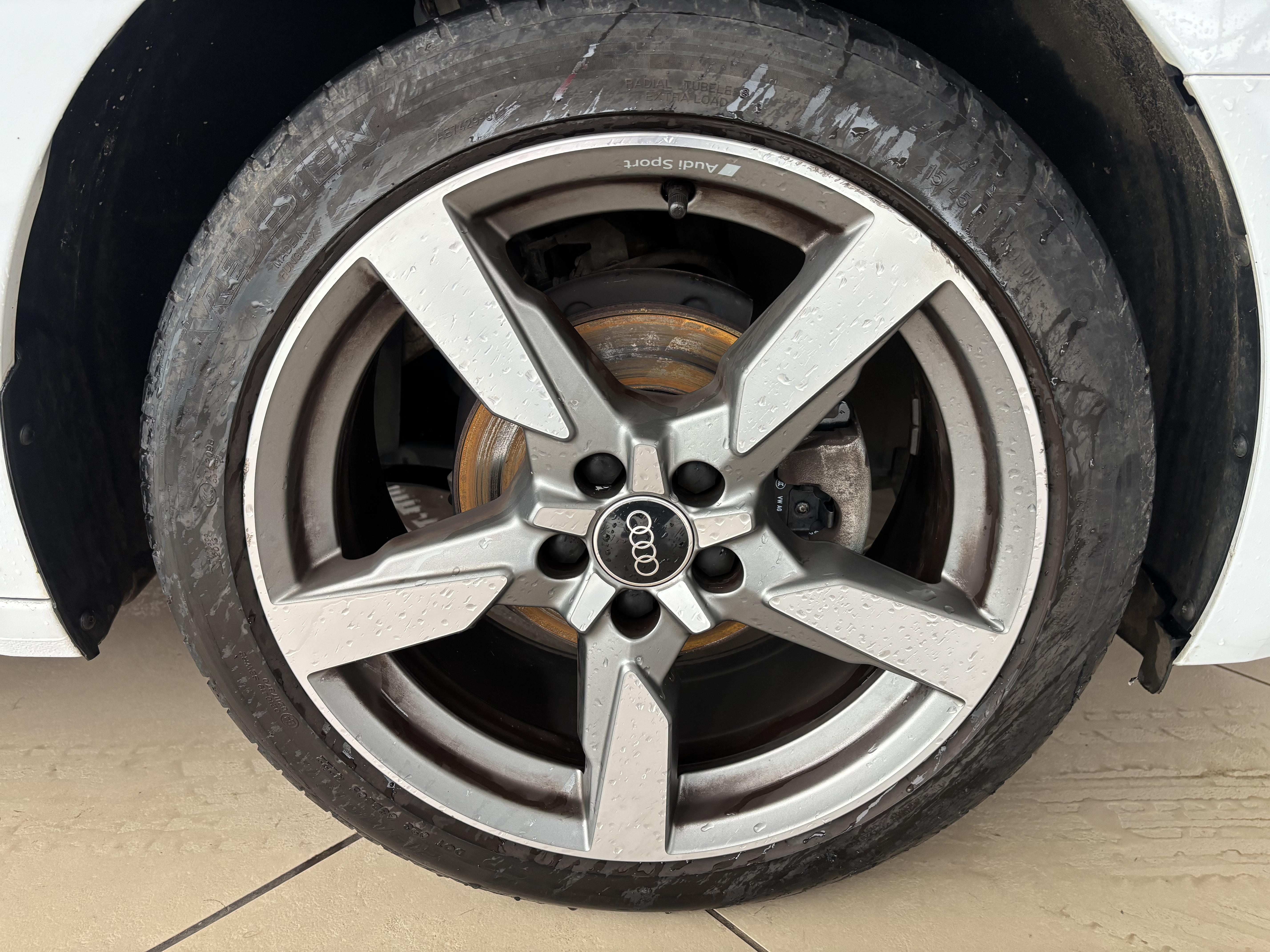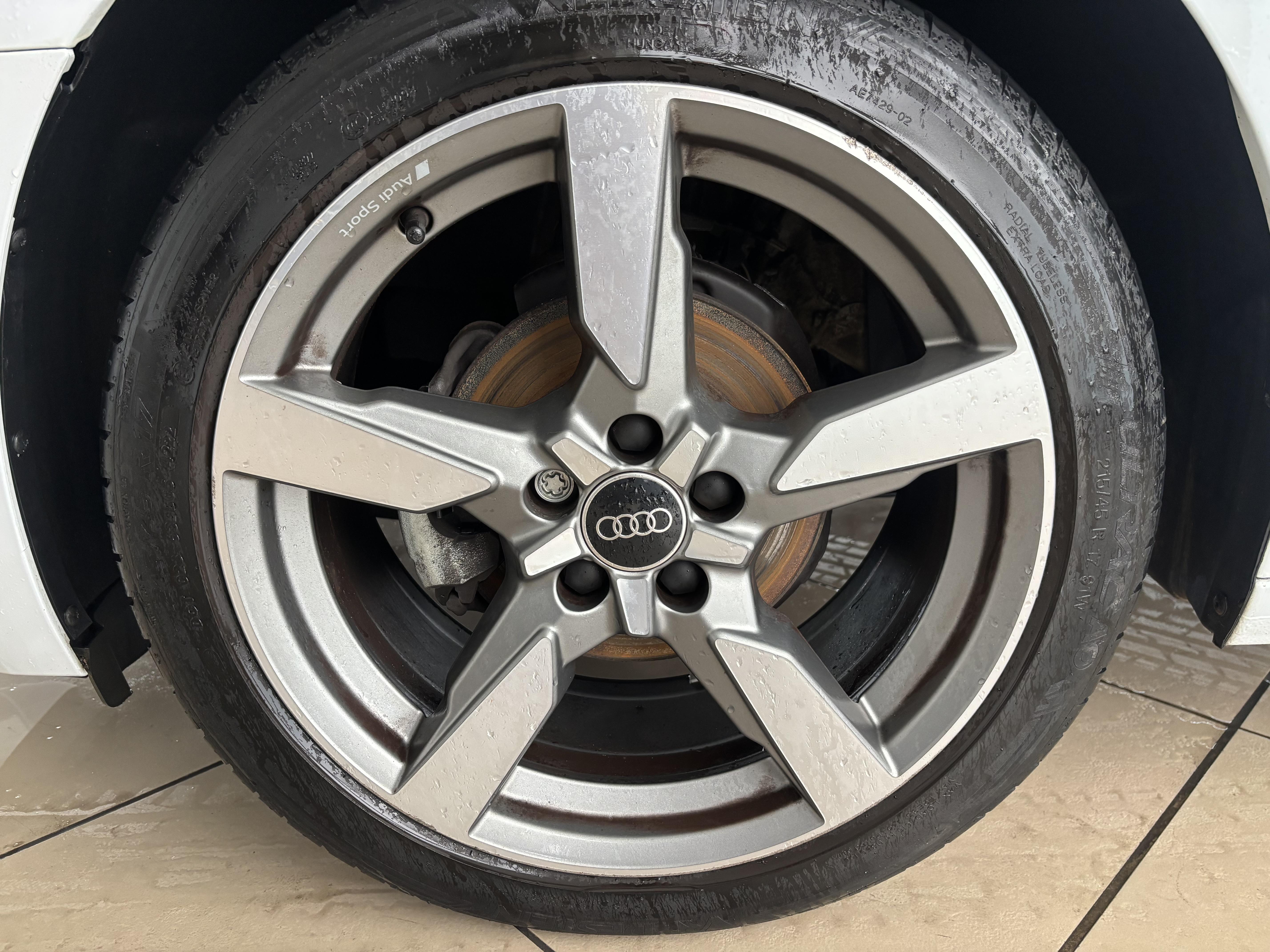 • Jantes en aluminium coulé Audi Sport style 5 branches polygones, finition titane mat, polies brillan brillant, 7,5Jx17", Pneus : 215/45 R17