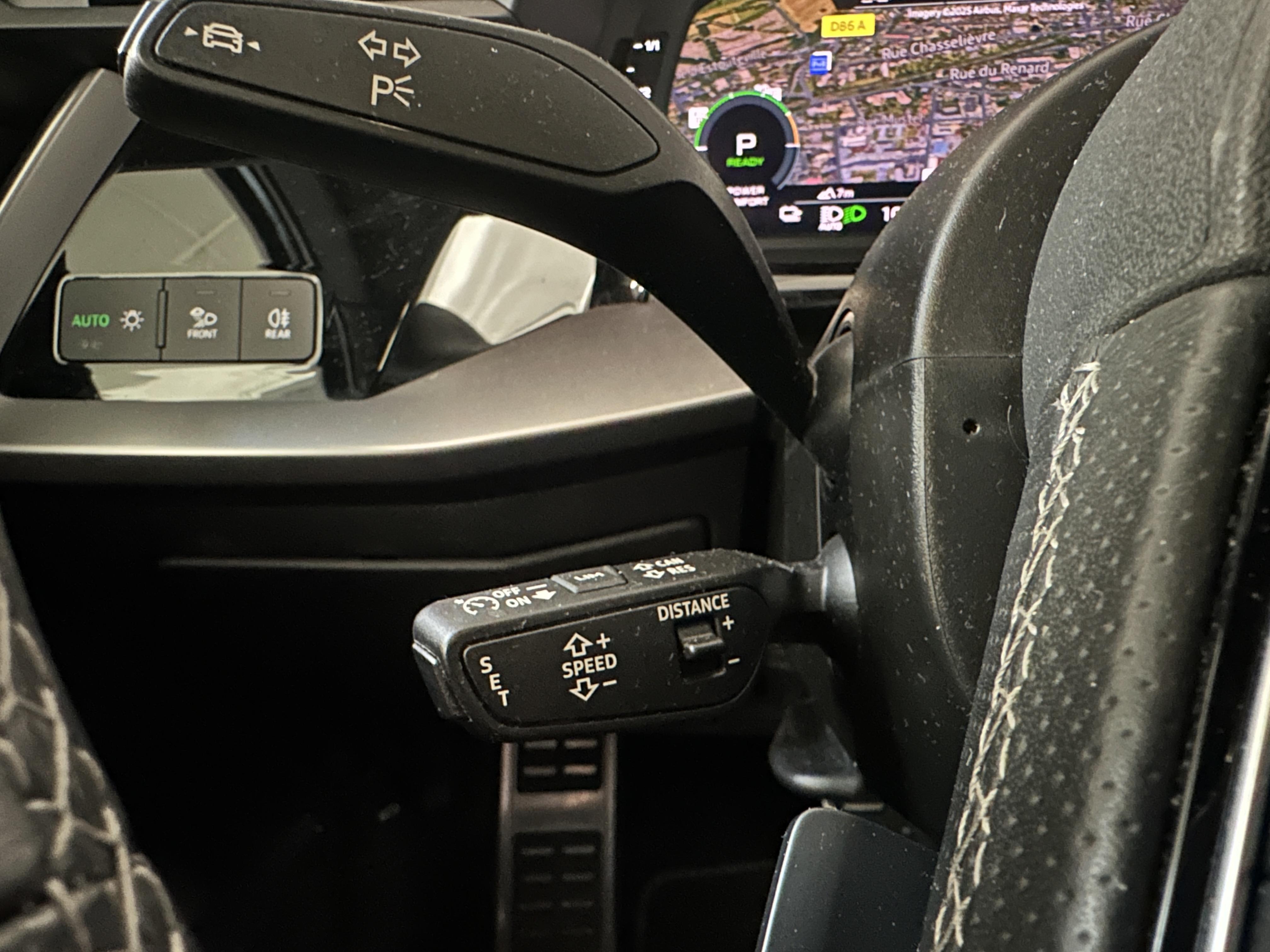 - Audi park assist : cherche à l'aide de capteurs à ultrasons les places de stationnement (bataille et créneau) appropriées le long de la chaussée, calcule le créneau idéal et gère le braquage automatiquement