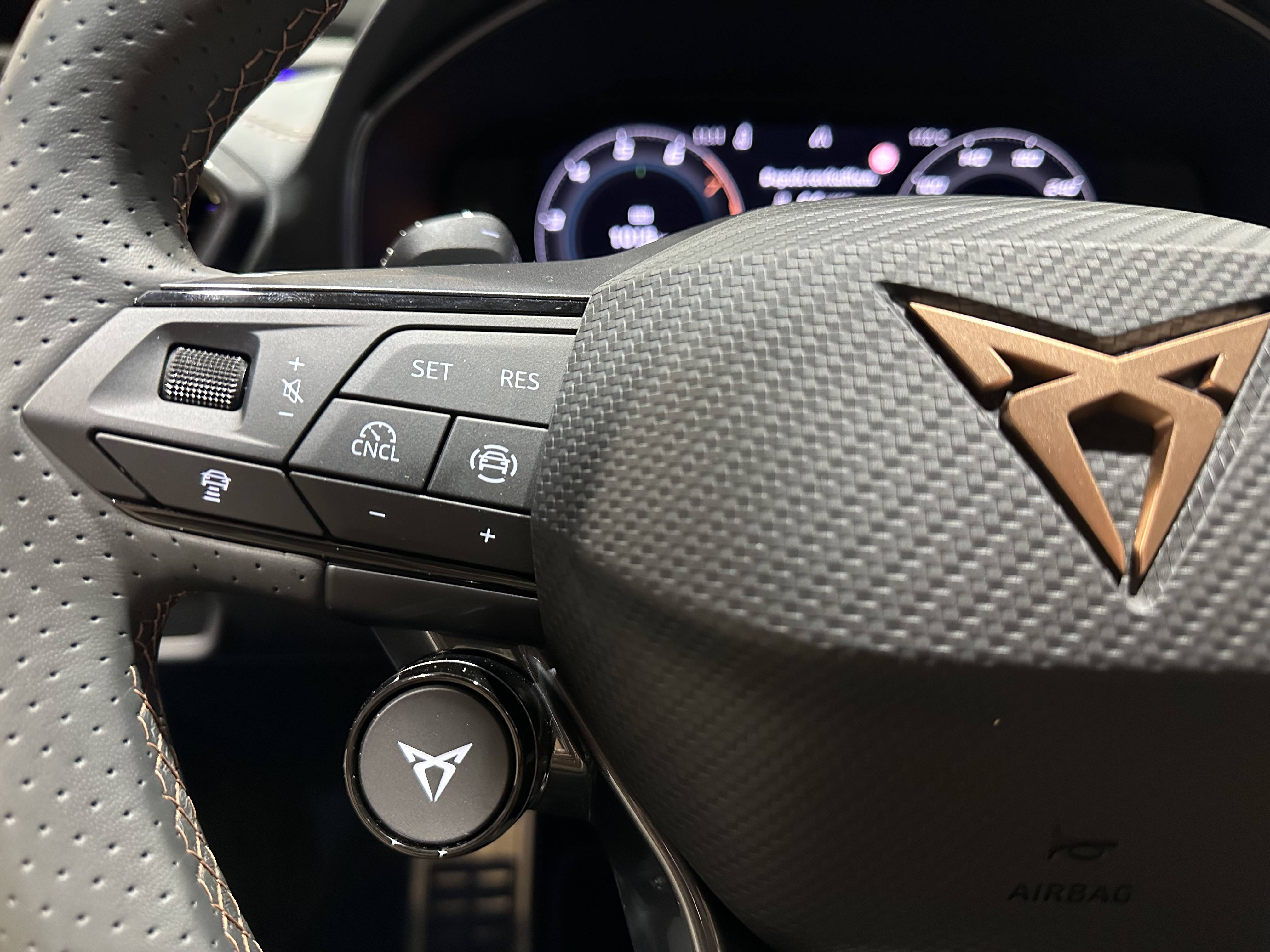 - Volant Supersports CUPRA en cuir avec boutons satellites, chauffant, avec palettes de changement de rapport