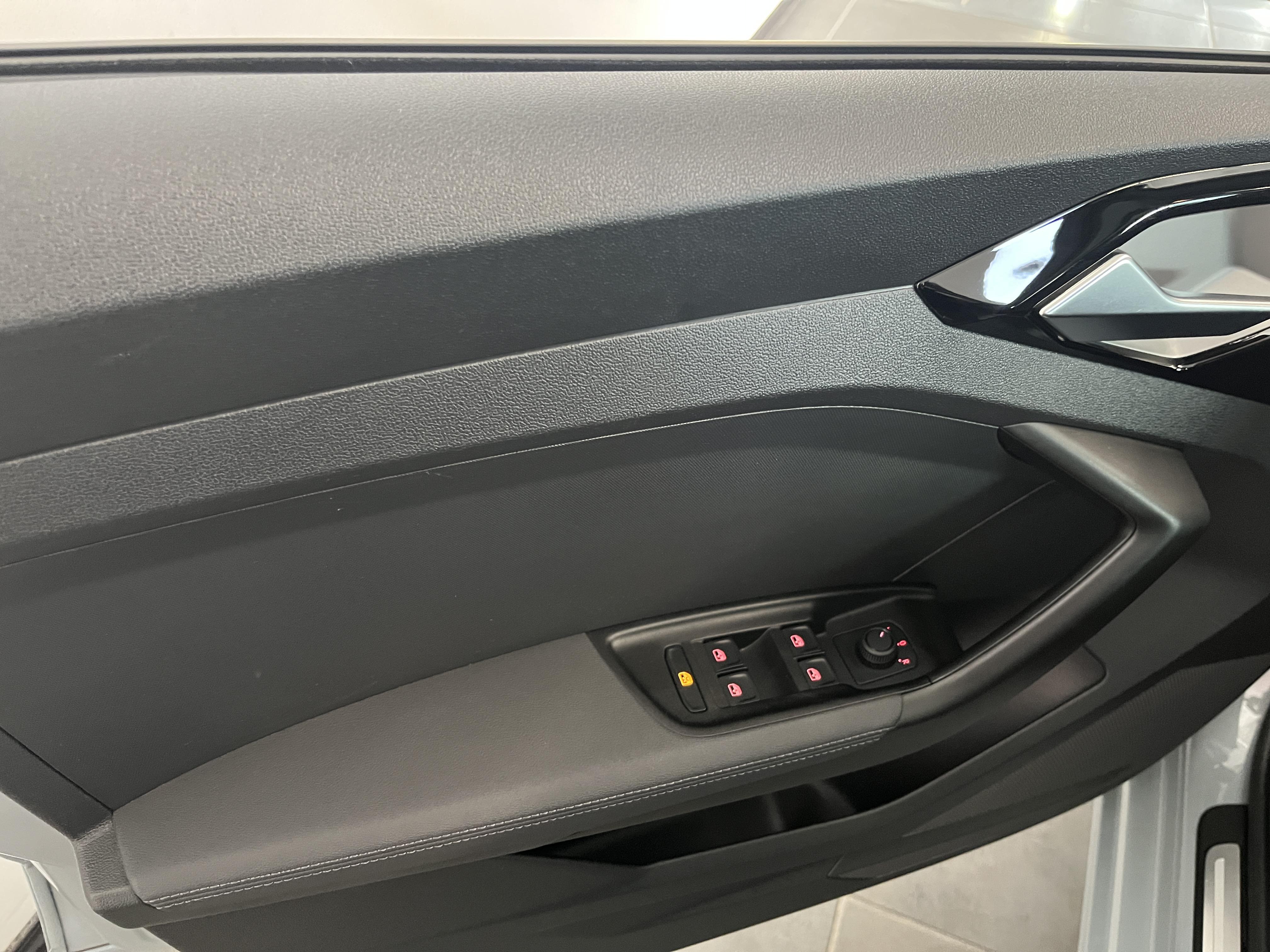 - Applications décoratives étendues sur le tableau de bord façon verre en noir, de l'écran couleur MMI touch jusqu'aux triangles de portières AV façon verre en noir