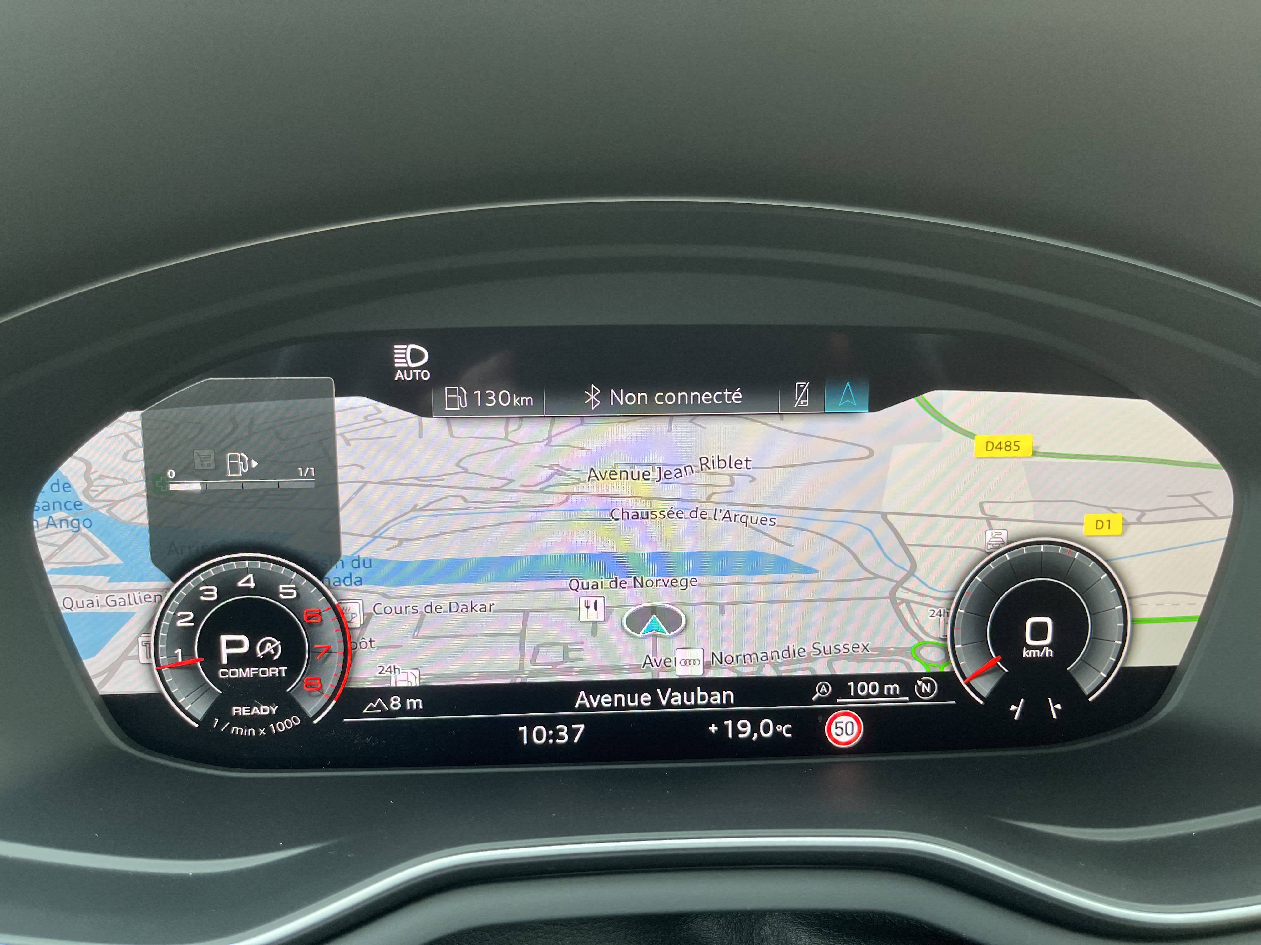 • Audi Virtual cockpit plus combiné d'instruments entièrement numérique de 12,3" en résolution Full HD, affichage flexible et fonctionnel des informations en fonction des besoins du conducteur, intégration des fonctionnalités MMI dans le combiné d'instruments, affichage de la carte de navigation en modèle de terrain 3D sur l'écran couleur, incluant recommandation de repos, possibilité d'affichage en mode Dynamique, Sport ou Classique haute résolution