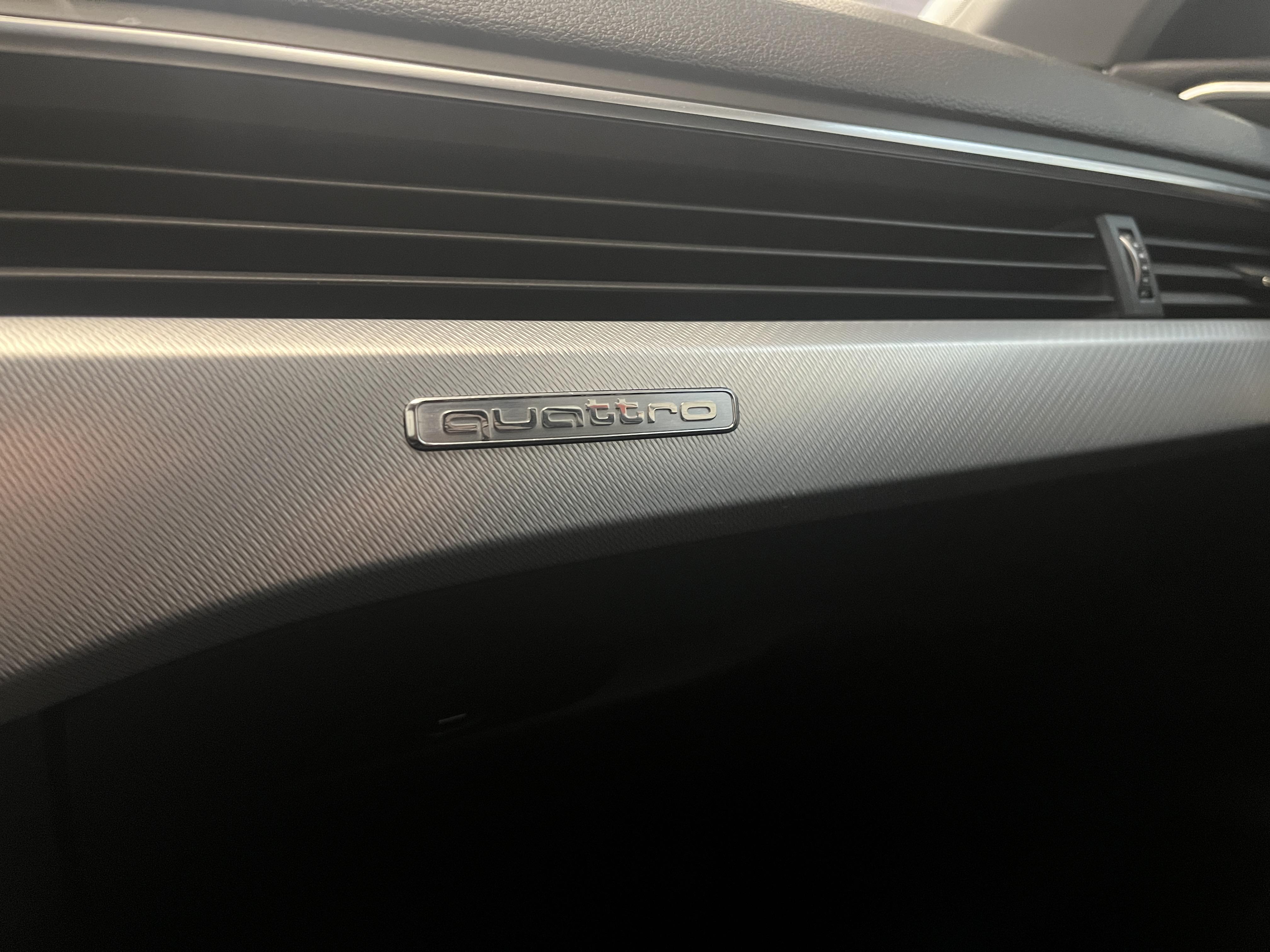 - Identification du modèle et de la technologie sur le capot de coffre inscription quattro (sur versions quattro) sur la calandre, sur le capot de coffre et sur le tableau de bord côté passager AV, sur demande sans identification de modèle/technologie à l'AR