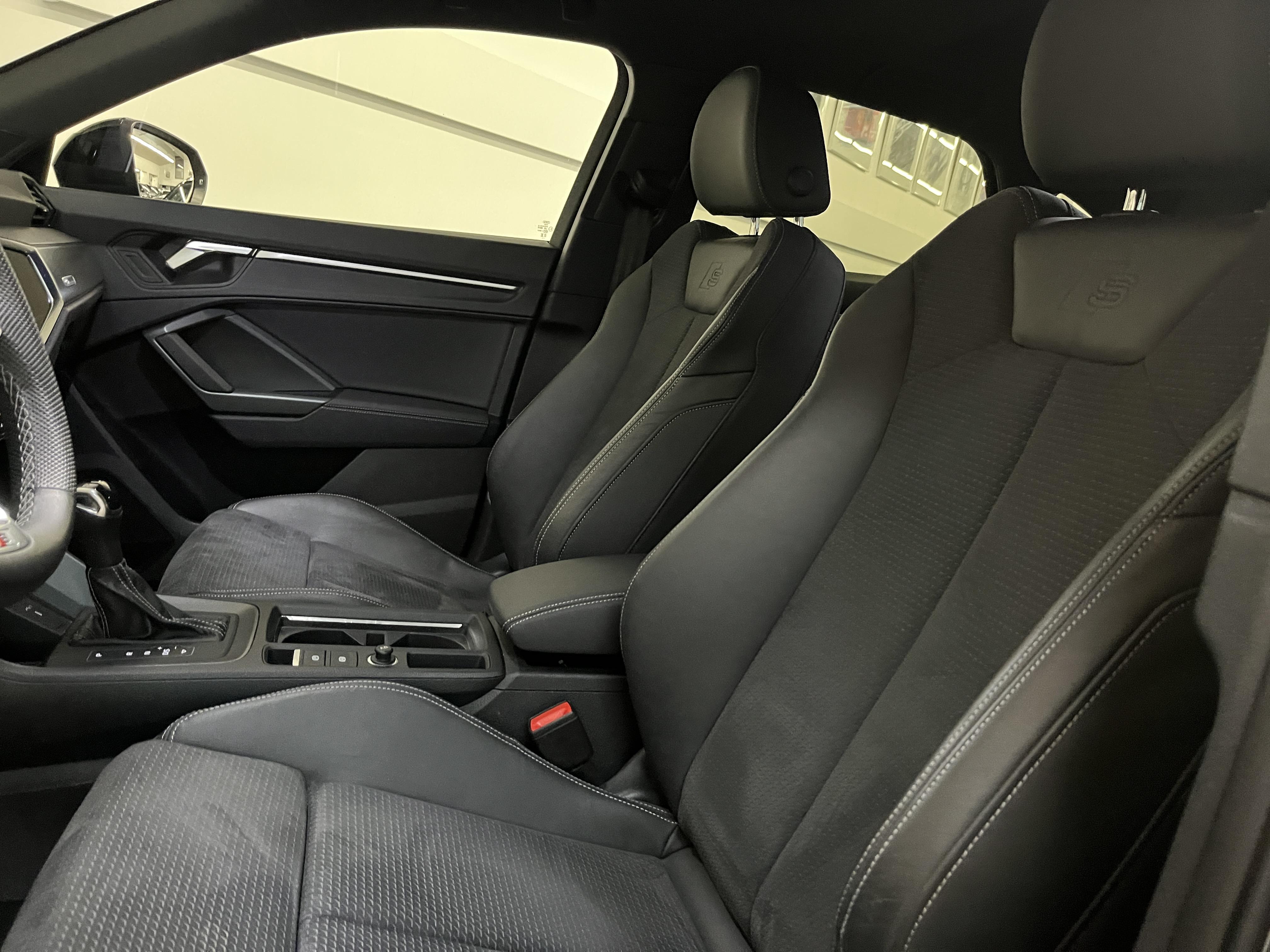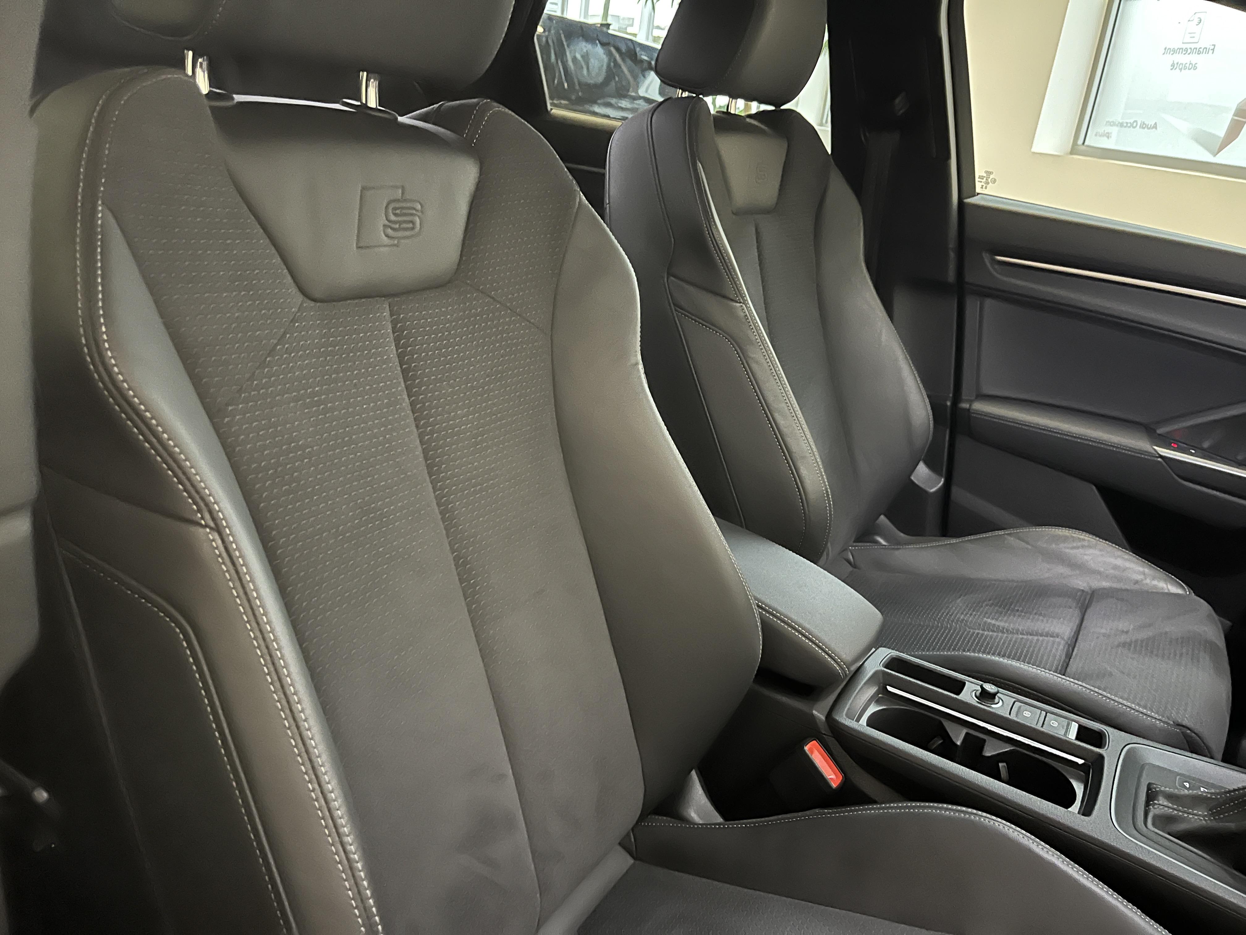 - Pack S line intérieur - Sièges Sport AV - Sellerie en tissu/matériaux synthétiques monopur 550 et estampillage S line sur le dossier des sièges AV - Frein à main avec surpiqûres contrastées, couleur assortie à celle de l'habitacle - Surfaces d'accentuation sur la console centrale et poignées intérieures de portières à l'AV de couleur laque fine gris ardoise - Pédalier et repose-pied en acier inoxydable - Tapis noirs AV et AR avec surpiqûres contrastées gris roche