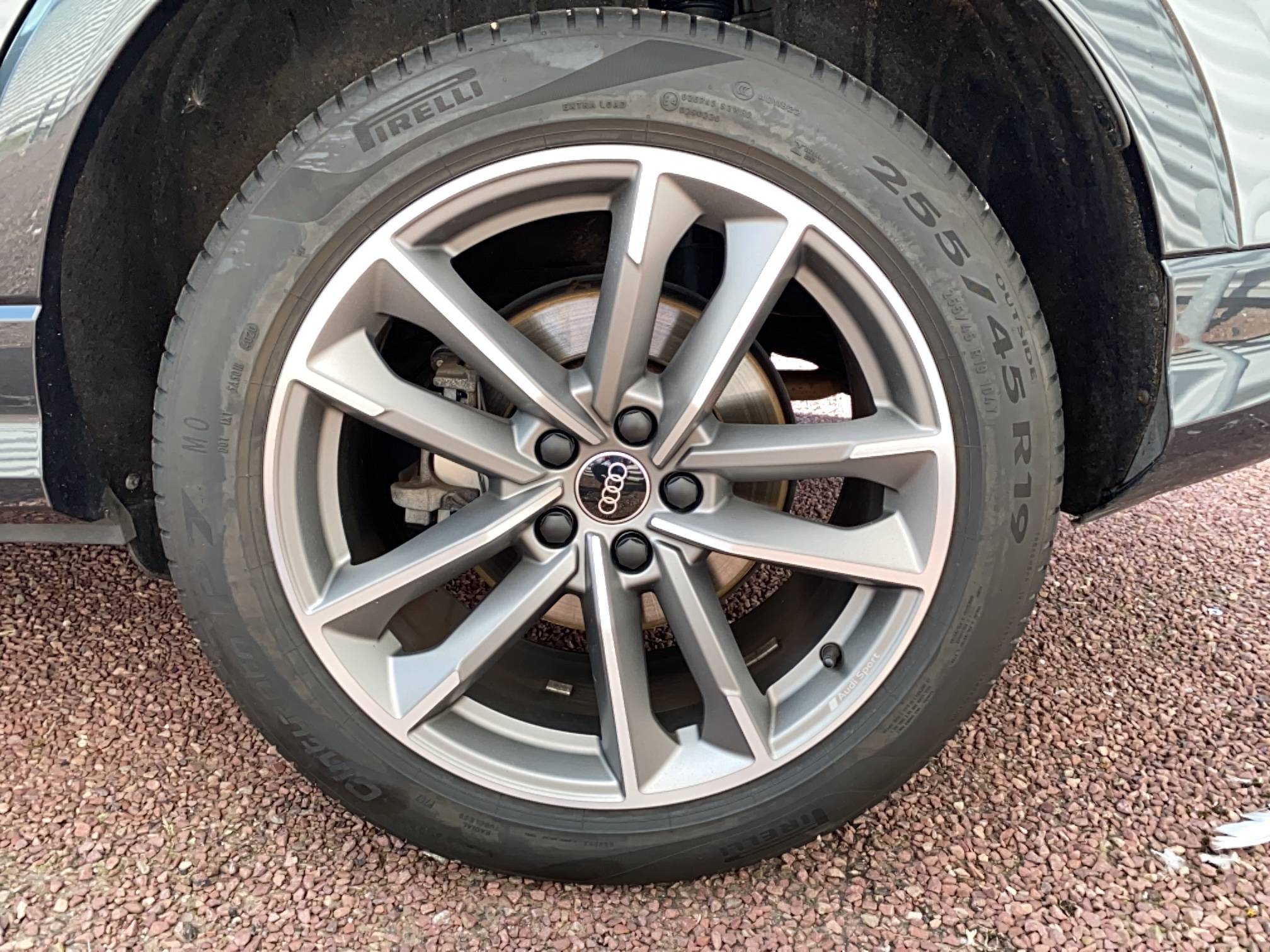• Jantes en aluminium coulé 19" Audi Sport 5 branches doubles, finition titane mat, polies brillant 8.5Jx19", pneus 255/45 R19