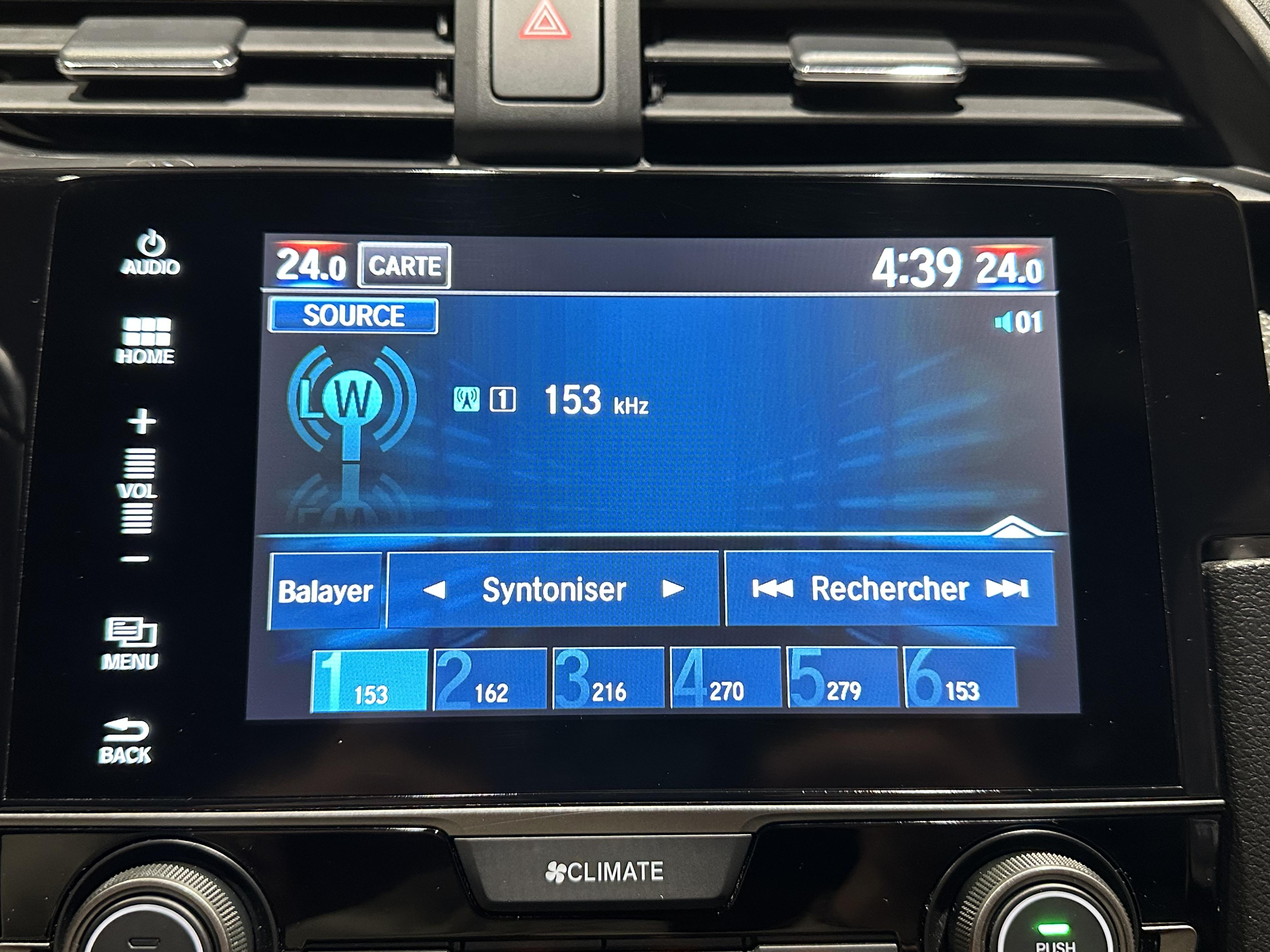 - Honda Connect: écran tactile 7" avec autoradio CD AM/FM/DAB, radio internet, application Aha TM, navigation internet et commandes au volant