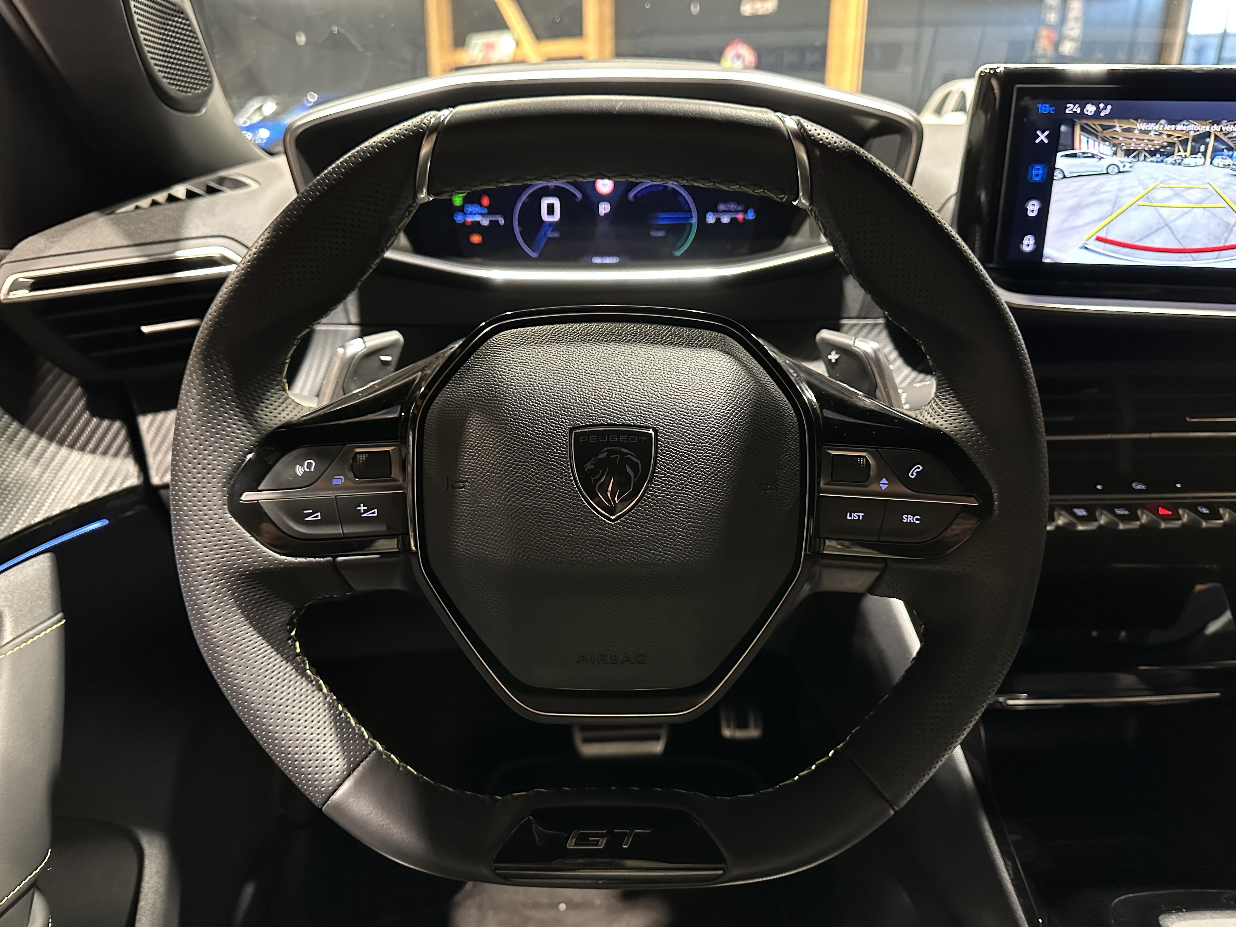 • Eléments de style éxterieur : Lécheurs de vitres Noir Brillant, Katana noir mat avec insert noir brillant et monogramme GT sur motorisations thermiques, Protections latérales de portes Noir grainées avec inserts Gris Météor, Becquet AR Noir Perla Nera, Seuils de porte aluminium avec lettrage PEUGEOT Noir