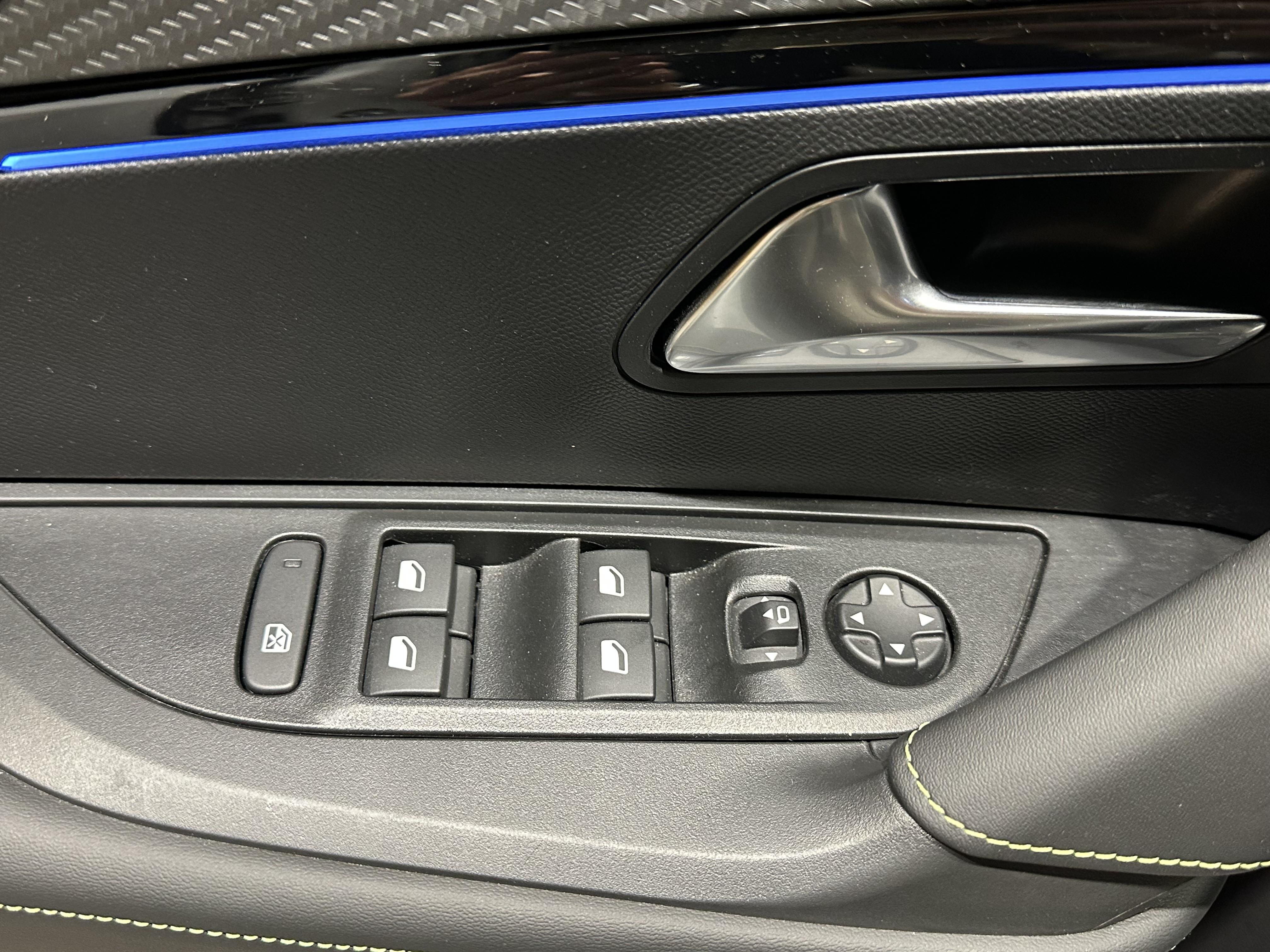 • Eléments de style intérieur: Planche de bord moussée avec double surpiqûres adamite/tramontane et baguette Noir brillant avec jonc chromé et jonc lumineux, Panneaux de portes AV avec décor Carbone et baguette Noir brillant et jonc lumineux (8 couleurs) et crosse de tirage TEP Isabella Mistral, Panneaux de portes AR avec grain Karsten avec baguette Noir brillant, Accoudoirs de porte AV/AR tissu/TEP Isabella avec surpiqûre Adamite