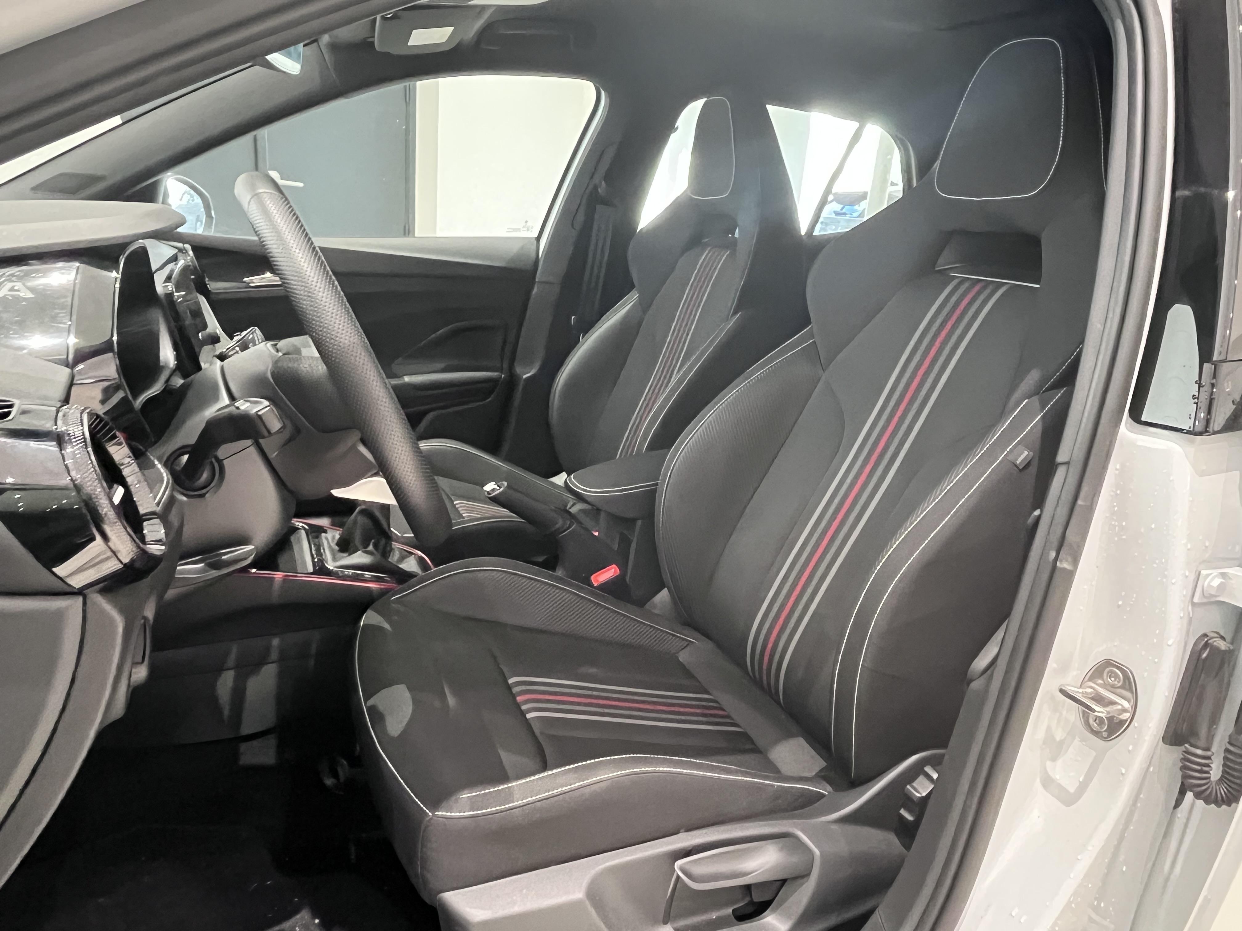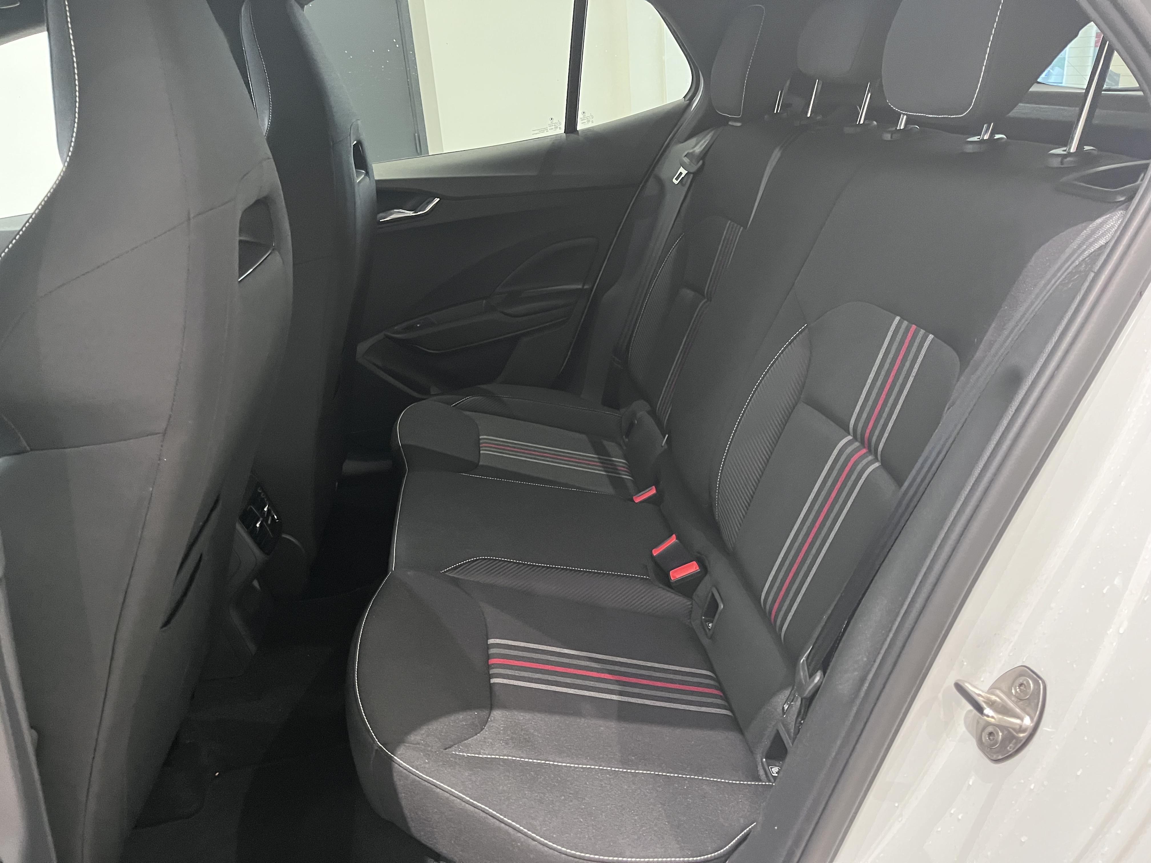 - Design intérieur Monte Carlo : sellerie tissu "Clip Satin Black" avec matériau synthétique effet carbone avec bande rouge et insert décoratif effet carbone